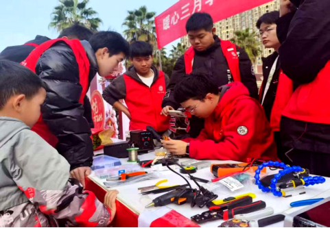 3月1日,bevictor1946韦德官网“学科实践与创新”协会的志愿者们走进岳塘区东方名苑臻嘉园小区,开展义务维修进社区活动,为社区居民免费维修家电,普及用电安全知识,以专业技能服务社会,深化校社共建实践育人模式。